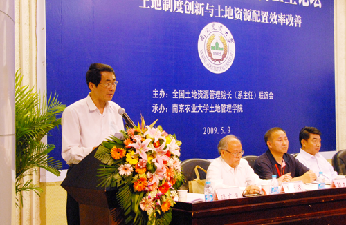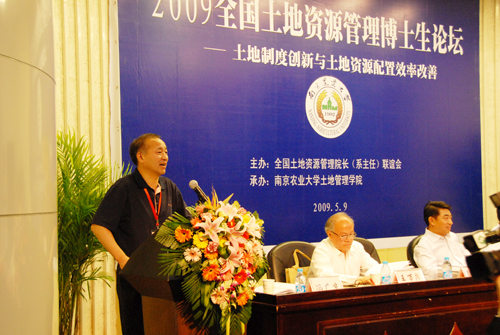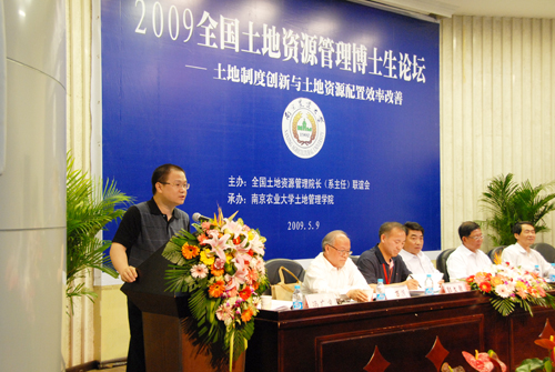 5月9日,由全国土地资源管理院长(系主任)联谊会主办,南京农业大学公共管理学院(土地管理学院)承办的2009全国首届土地资源管理博士生论坛开幕式在南京农业大学举行。来自中国人民大学、浙江大学、武汉大学、华中农业大学、西南大学等全国20多所有关高校的70余名博士研究生参加了此次论坛。论坛紧紧围绕“土地制度创新与土地配置效率改善”的主题,对全国土地资源管理领域的最新研究成果进行广泛交流。