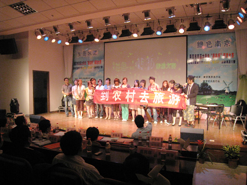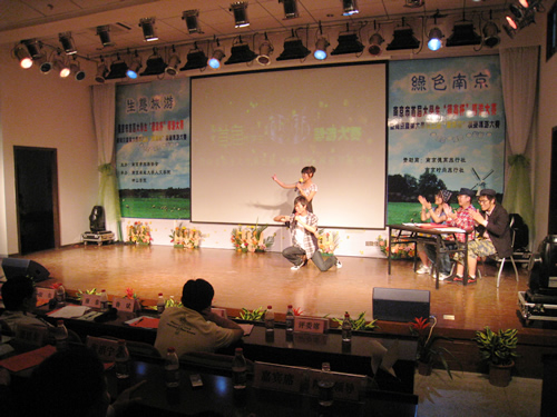 1号选手的良好表现也为其他选手带了个好头,紧接着上场的选手们个个拿出了自己的看家本领。有的唱着茉莉花的优美旋律登场,将我们引入茉莉花这首名曲的源头——金牛湖;有的踏着闲适的步伐,用温软的嗓音带我们去领略高淳老街的古朴;有的打着天津快板,为我们解说那田园牧歌,映像江心里简简单单的快乐……不论是珍珠泉的神奇与灵性,或是锁石村里草莓皇后的甜蜜,不论是牛奶园里不似江南的茫茫草场,还是胭脂河上天生桥的鬼斧神工……选手们用他们出众的口才,带领我们走进了一个又一个闲适的绿色世界。那里是不同于都市的宁静安详,那里是不同于都市的乡村特色!