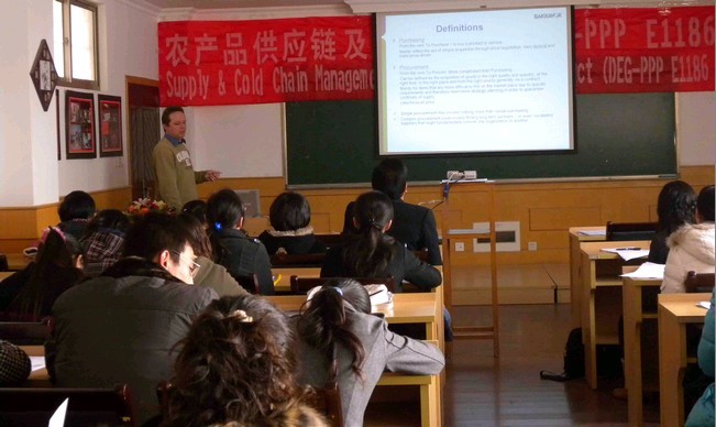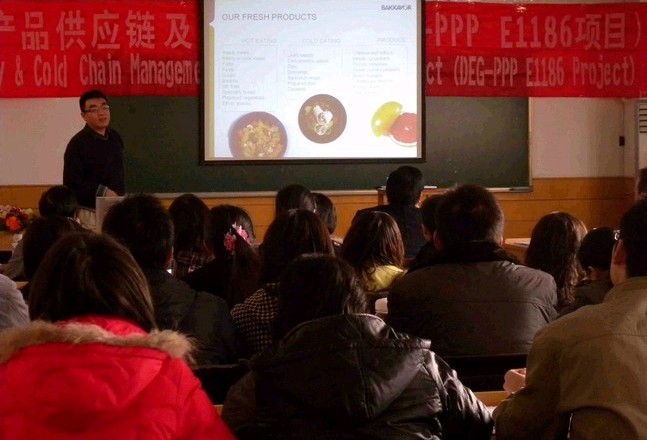 11月21日,在园艺学院学术报告厅举行了农产品供应链及冷链管理(Supply & Cold Chain Management Training for Agro-Product)第二期培训研讨会。本次培训研讨会由德国投资与开发有限公司(DEG)、巴卡沃创造食品有限公司(BAKKAVOR CREATIVE FOODS)、南京农业大学(NAU)联合主办,DEG-PPP E1186项目资助。我校园艺学院柳李旺教授主持研讨会并做了题为“蔬菜产业与农产品冷链管理(CCM)”的讲座;来自BAKKAVOR公司的法国专家Franck Plat先生作了“Global GAP & Food Safety”与“Purchasing, Procurement and Supply Chain”专题报告,系统讲解了全球良好农业操作规范(Global GAP)以及农产品采购与供应链管理、食品安全等相关知识。共有园艺、食品、农学、生命科学、资环等学院五十多名学员参加培训,并积极参与讨论。