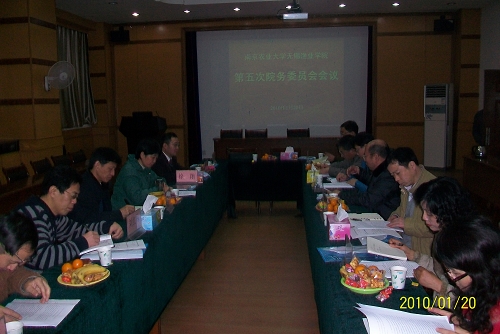 2010年1月20日上午,南京农业大学无锡渔业学院第五次院务委员会会议在动物科技学院正昌报告厅召开。副校长、院务委员会主任徐翔教授出席并主持会议。
