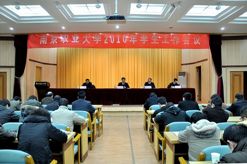 为了以改革创新精神提高我校学生工作科学水平,全面部署实施我校学生工作“三大战略”,学校于2010年3月5日上午在金陵研究院报告厅召开南京农业大学2010年学生工作会议。校党委副书记花亚纯出席会议并作报告,出席会议的还有校学生工作处处长刘营军,校研究生院常务副院长董维春,校团委书记夏镇波等,来自各学院分管学生工作的党委副书记,各学院专兼职辅导员、学生工作处、团委和研究生工作部等职能部门的同志参加了会议。会议由刘营军主持。