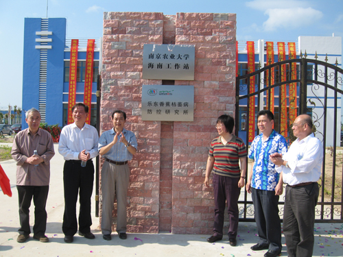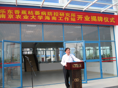 2010年3月19日,南京农业大学海南工作站暨乐东香蕉枯萎病研究所揭牌仪式在海南省乐东县举行,农业部科教司副司长刘艳,南京农业大学教授盖钧益院士,国家环保总局南京环科所研究员蔡道基院士,南京农业大学副校长沈其荣,乐东县县委常委、县长黄嘉琪,万钟公司总经理李瑜生等共同为海南工作站揭牌。海南省农业厅、学校党委宣传部、科技处、产学研合作处、计财处以及出席农业部公益性行业项目“有机(类)肥料”的代表共80余人参加了揭牌仪式。