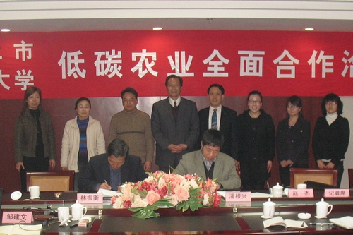 2010年4月3日,河南省商丘市政协副主席胡学亮、政协副秘书长赵杰、河南商丘三利新能源有限公司董事长林振衡等率领河南商丘市代表团前来我校,洽谈低碳农业全面合作。我校副校长胡锋、资源环境学院副院长邹建文等热情接待了商丘代表团。