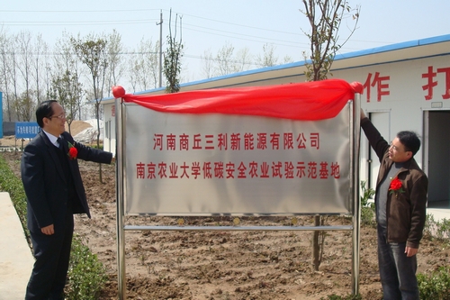 贾宏伟在揭牌仪式上代表市委市政府高度赞赏了三利公司在生物质工程转化上的技术研发和在低碳农业上应用的探索,肯定了生物质工程技术发展和低碳农业在当地农业产业现代化发展中的巨大前景,明确将通过财政和政策大力扶持农业生物质工程转化与应用,希望通过产学研密切合作,探索出一条符合河南和中国农业与农村实际的低碳农业技术模式和运行机制。贾宏伟还对生物质碳工程技术的规模化、规范化与标准化和现代化提出了进一步的发展要求,期望通过合作在生物质碳转化工程的重大和关键技术上逐步取得突破,进一步提升技术规模和生产水平,应用技术的组装和集成水平以及产品和应用的多元化水平,形成规模化和集团化的生物质碳工程生产技术,实现产品的规模生产力和区域农业生产力,并逐步扩大市场和国内外影响。贾宏伟希望这一合作基地将为打造商丘低碳农业新生长点、形成新的农业优势作出突出贡献。