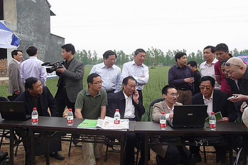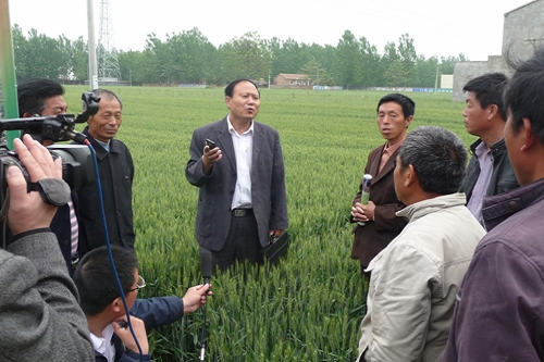 为了进一步推广该技术,5月13日上午,商丘市政协副主席胡学亮、市长助理江方众带领政协、科技局、开发区、农业局、工信局、中央粮食储备库等部门负责人,以及河南科技报、商丘日报、商丘电视台、京九晚报等记者等一行来到“耕地监测与精准测土配方施肥信息化示范基地”,与当地农民一起现场考察观摩该技术的示范推广情况。河南黑大壮肥业有限公司总经理尤清亮及其肥料代理商、我校公管院院长助理王承武副教授、农村信息化工程中心技术人员等人一同观摩。