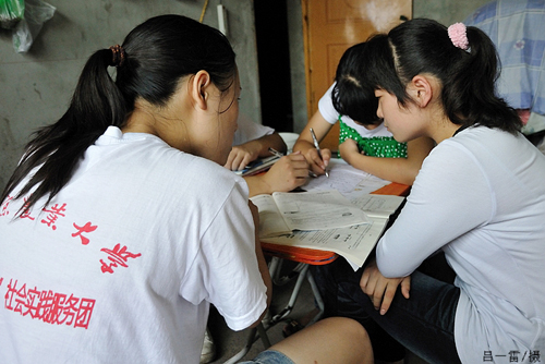 实践活动期间,团队首先走进蒙城二中受访同学的家中开展调研活动,和他们一一进行沟通和交流。此外,服务团还有针对性地为农民工子女进行课业辅导和心理辅导。由于受访学生多是即将升入初三年级的孩子,队员们课业辅导方面狠下功夫,同时注意向他们传授学习方法,争取让他们在较短的时间里取得最大的收益。与此同时,实践服务团着重对学生进行了自护教育。为他们讲解地震、火灾等逃生知识,独处时的自我保护知识等,以提高他们的安全意识和自我保护能力,更好的适应复杂多变的生活环境。