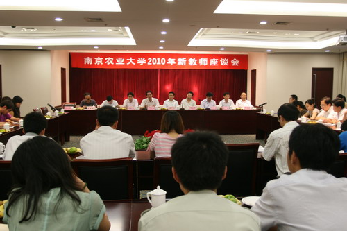 9月17日下午,我校召开新教师座谈会。卫岗校区2010年新进校教师参加了座谈会。校长郑小波、校党委副书记盛邦跃和党办主任戴建君、校办主任李友生、校工会主席丁林志、教务处处长王恬、科技处副处长朱世桂、人事处副处长杨坚以及教师代表等出席了座谈会,座谈会由盛邦跃主持。