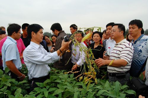 会后,岗位科学家们还和全体培训班成员到国家大豆改良中心江浦农场进行大豆病虫害的现场识别与防控技术交流。在江浦农场,参与此次培训的老师和培训班成员对大豆生产中的植保问题、病虫害识别和控制技术进行了讨论。大家一致觉得这种形式的培训交流形象具体,效果很好,对促进我国大豆病虫害的防控水平具有显著的促进作用。