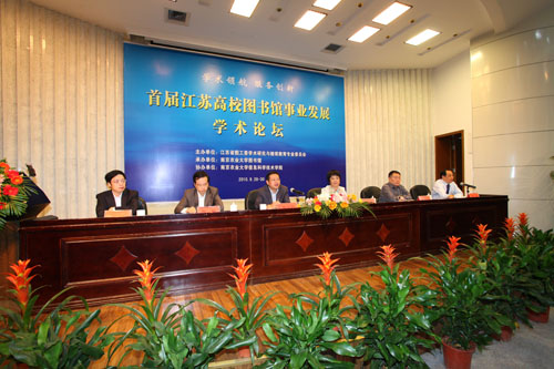 9月28-30日,以“学术领航 服务创新”为主题的首届江苏高校图书馆事业发展学术论坛在南京农业大学举行。本次会议由江苏省高校图工委学术研究与继续教育专业委员会主办,我校图书馆承办,信息科技学院协办。南农大副校长徐翔教授、省教育厅高教处处长徐子敏、中国社科院学部委员黄长著教授、省高校图工委副秘书长邵波教授、南京图书馆副馆长许建业研究员、中国图书馆学报常务副总编蒋弘教授、浙江大学图书馆副馆长黄晨教授、南京大学信息管理系主任孙建军教授等应邀出席论坛。来自南京大学、东南大学等江苏省47个高等院校图书馆的相关领导共计96名代表参加了本次会议。论坛开幕式由我校图书馆馆长包平教授主持。