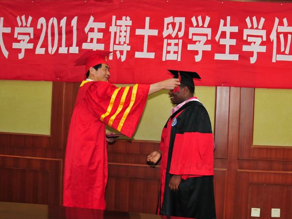 郑小波代表学校向Ramani表示热烈祝贺,勉励他在新的人生起点上继续努力,取得更大成就;希望他和母校保持联系,与导师保持联系,做中国和肯尼亚之间的友好使者。