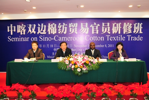 韩纪琴代表授课教师发言。她表示很高兴能够有机会为研修班授课,并希望在向学员介绍中国棉纺贸易理论和经验的同时,了解喀麦隆的棉花生产概况以及棉纺贸易方面的情况,与大家就棉纺贸易方面面临的问题与挑战进行研讨,寻求两国在棉纺贸易发展中的新对策和新举措。喀麦隆农业与乡村发展部土壤与肥料司副司长Sala Sala Theodore先生代表学员,感谢南京农业大学为研修班所做的周密安排和热情接待。他希望通过三周的研修,学习中国的棉纺贸易理论,了解中国的经验,深化双方在该领域的交流与合作。