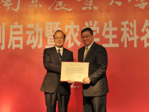 5月9日,南京农业大学举行隆重仪式,正式聘任香港大学梁志清教授为我校生命科学学院名誉院长。聘任仪式上,副校长胡锋宣读了《南京农业大学关于聘任梁志清教授为生命科学学院名誉院长的决定》。校长周光宏为梁志清教授颁发生命科学学院名誉院长聘书。