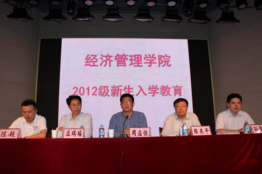 大会伊始,周应恒向新生介绍了经济管理学院的悠久历史和光辉篇章,经管院培养了一大批杰出校友,有着悠久的、光荣的历史。他对新生提出了具体要求:上好课,多看书,勤思考,多探讨、交流;互相帮助,互相提携,学会宽容,全面充实自己。他还提出了四个重要:方向比努力重要,能力比知识重要,健康比成绩重要,情商比智商重要。周应恒的讲话引导了新生正确认识大学生活,也引起了在场新生的共鸣。 紧接着,陈东平着重强调了“四有、四会”这两项要求。四有,即有理想,有道德,有文化,守纪律。有理想是指有具体、明确的理想。有道德就是有使命感,有责任心。有文化,通俗地讲就是知道别人不知道的,文化有着辐射、凝聚、规范、导向、激励的特点。守纪律讲的是要有所约束。四会指会写,会说,会算,会调查研究、做群众工作。陈东平认为,我们在日常生活中要多看、多听、多想、多感悟。口才是学生应该着重锻炼的一部分。他希望,毕业之时,大家都成为真正合格的毕业生。