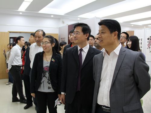 开幕式结束后,花亚纯、胡锋等校领导和书画爱好者们一起参观了书画展现场。
