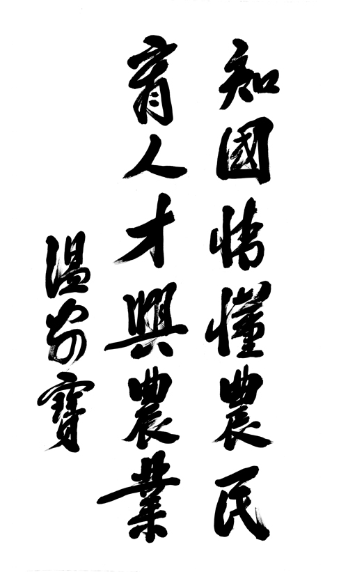 中共中央政治局常委、国务院总理温家宝题词:“知国情 懂农民,育人才 兴农业”