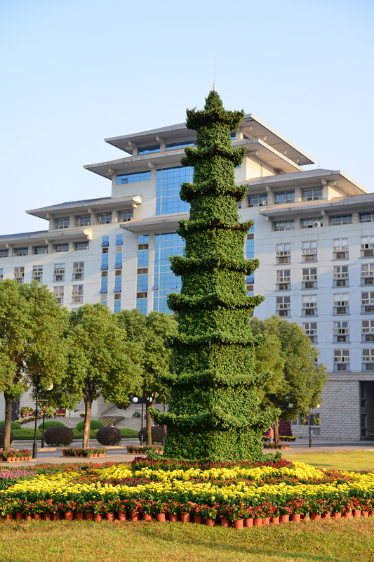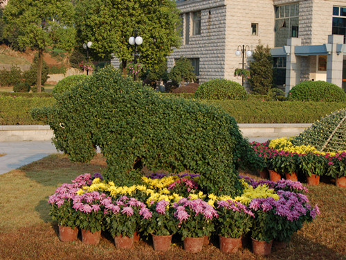 为给校庆献礼,同时回报市民,园艺学院对逸夫楼广场菊花布置进行了精心的设计,不仅造型优美,而且寓意丰富,细节之处见精神。这些寓意,你品味出来了吗?