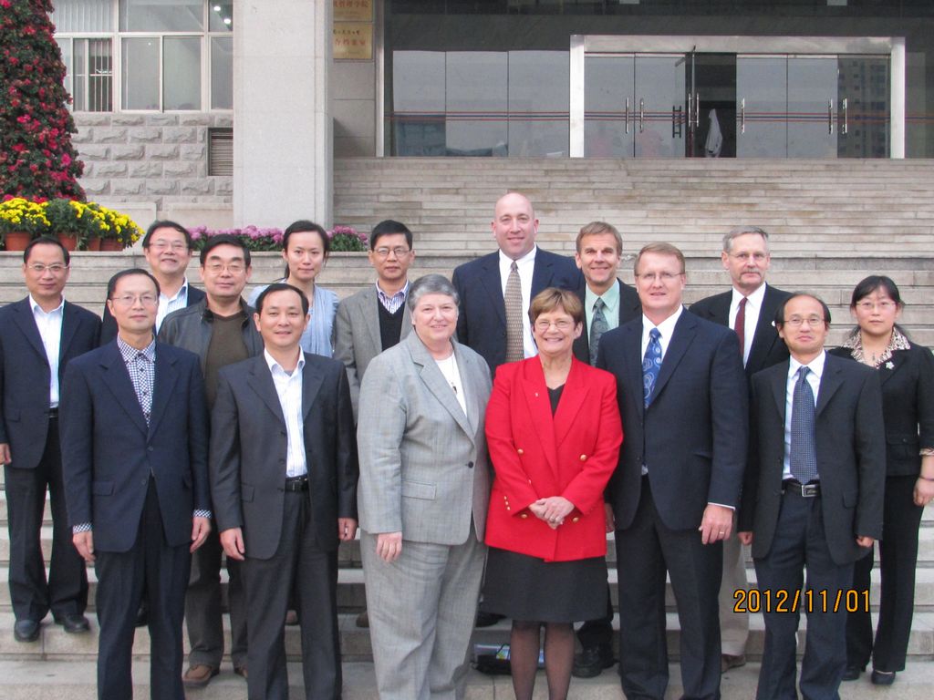 10月31日-11月2日,美国衣阿华州立大学(Iowa State University,简称ISU)副校长Sharron Quisenberry代表团一行来访我校,就双方共建“猪病诊断技术研究中心”一事进行磋商。ISU来访成员包括:兽医学院院长Lisa Nolan教授、兽医诊断中心主任Patrick Halbur教授、猪病教育中心Locke Karriker教授、兽医学院Ganwu Li助理教授、Mark Ackermann教授和Catherine Logue教授。