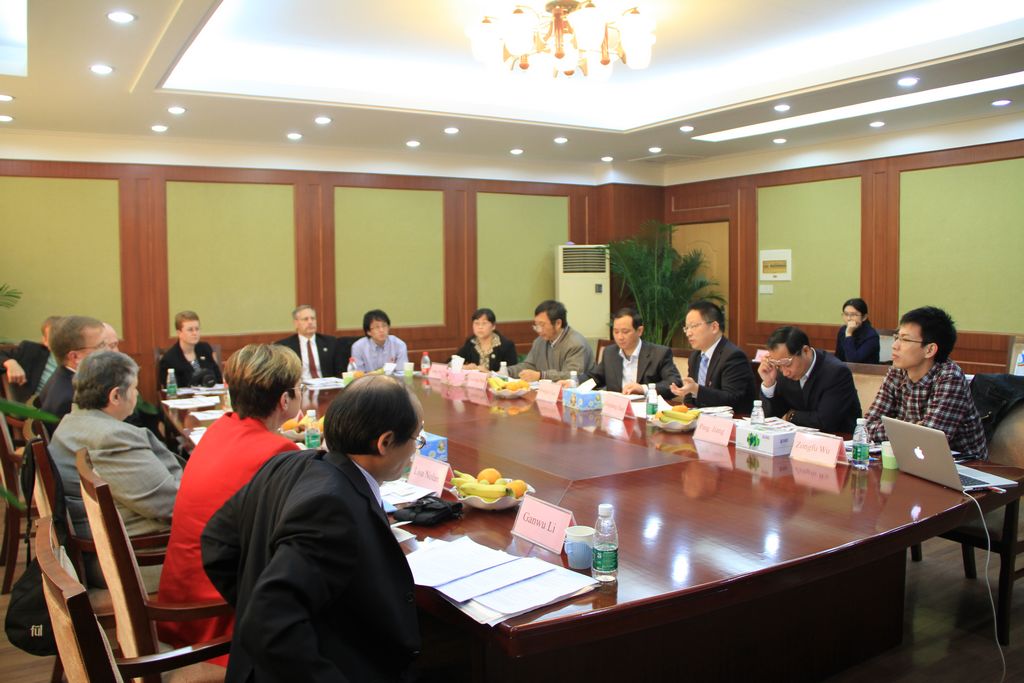 来访期间,国际合作与交流处、科学研究院、动物医学院负责同志及相关教授分别与代表团进行了座谈。国际处处长张红生向代表团介绍了我校的国际化发展战略,与国外高校或研究机构共建联合实验室(研究中心)、联合教育中心是推进国际化的重要举措。ISU兽医诊断中心主任Patrick Halbur教授介绍了中心的服务宗旨、研究领域、管理理念以及人员配置等;动物医学院院长范红结介绍了双方拟建的“猪病诊断技术研究中心”的筹备情况,包括用地面积、资金投入与来源渠道等。科研院实验室与平台处处长张晓东对ISU兽医诊断中心给予了高度肯定,他说,ISU兽医诊断中心设施完备、管理理念先进,对我校有借鉴意义,科研院将大力支持两校联合研究中心的建设。