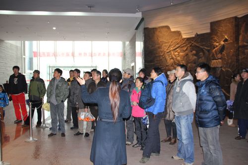 在淮海战役纪念馆,讲解员的栩栩如生的解说下,大家参观了全馆,馆外雨声阵阵,大家身临其境地感受了在64年前的那场战役中,在国共兵力对比悬殊的情况下,人民在战争中所起的决定性作用和全体解放军顽强拼搏、勇于献身的革命主义精神。