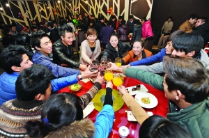 昨天,现代快报与河海大学MBA联合会,为他们临时组建了一个“大家庭”,陪他们吃年夜饭,给他们发“红包”、送年货、送祝福。现代快报记者 钟晓敏 仲茜