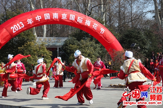 中国网江苏频道讯(记者 李檀 摄影记者 郑鹏)2月20日上午,第十八届中国南京国际梅花节正式拉开序幕,南京市副市长陈刚、南京市旅游局副局长周旭以及市民代表潘共同击鼓开幕。此届梅花节将会持续到3月31日。