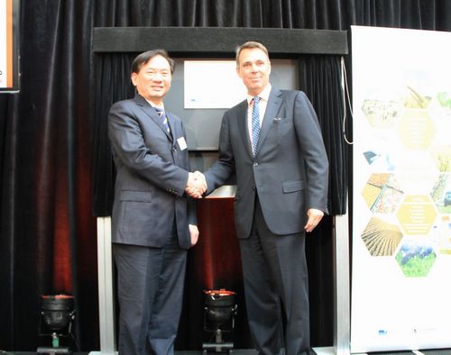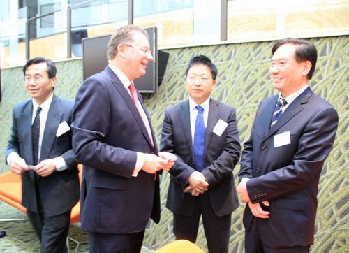 在拉筹伯大学访问期间,沈其荣一行出席了该校农业生物科学中心(Center for AgriBioscience,以下简称“AgriBio”)的揭幕仪式,参观了AgriBio的实验设施;同时,与该校科学、技术与工程学院的相关教授进行座谈,双方介绍了各自的科研优势、就开展本科生2+1+1联合培养项目与博士研究生联合培养项目进行了讨论并达成一致。澳大利亚维多利亚州州长Denis Napthine、拉筹伯大学校长John Dewar,副校长John Rosenberg,副校长Keith Nugent等分别会见了沈其荣一行。AgriBio由拉筹伯大学与维多利亚州政府共建,总投资2.88亿澳元,研究领域涵盖植物、动物基因组学,植物病理,动物健康和农业可持续性等,可容纳400名研究人员与工作人员。该中心世界领先的研究设备与先进的管理体系给代表团留下了深刻印象,也为我校筹建白马校区提供了不少借鉴意义。