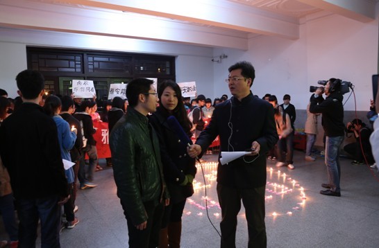 昨晚,在南京电视台此次推出的“心系雅安”特别报道中,东方前往南京农业大学,和学子们一起点燃祝福的蜡烛,许下心愿,为灾区人民祈福。
