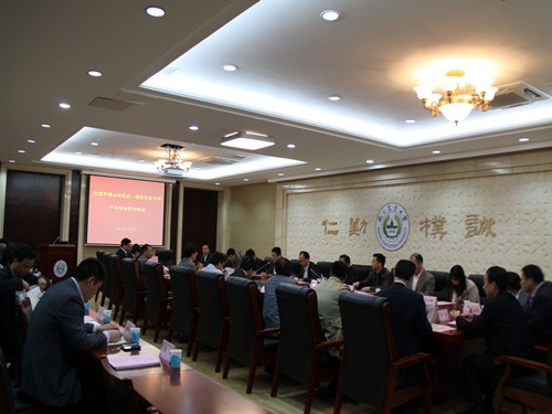 丁艳锋还重点介绍了我校与江苏省农委、江苏省教育厅、江苏省财政厅共建的江苏农村发展学院,并从成立背景、发展定位及体制机制创新等方面介绍了我校新农村发展研究院的相关情况。他指出,希望通过建设新农村发展研究院,进一步推动校地、校所、校企间的深度合作,达到双方互利共赢的良好局面。