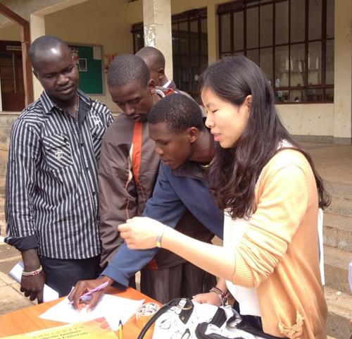 为做好首次招生工作,我校负责孔子学院招生的老师们在埃格顿大学学生中心、毕业广场、文学院和纳库鲁市中心等地设置报名点,接受学生和市民的现场报名咨询。此次招生不仅顺利完成了招生计划,而且提升了孔子学院在埃格顿大学及周边地区的社会影响力。