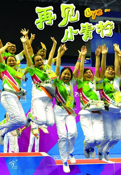 昨晚,多个亚青场馆比赛结束,一些志愿者在场馆内举行告别仪式。扬子晚报记者刘浏摄