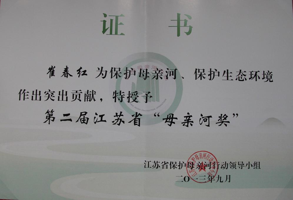 近日,第二届江苏省“母亲河奖”颁奖典礼在江苏科技大学举行,我校资环学院教师崔春红荣获个人奖。