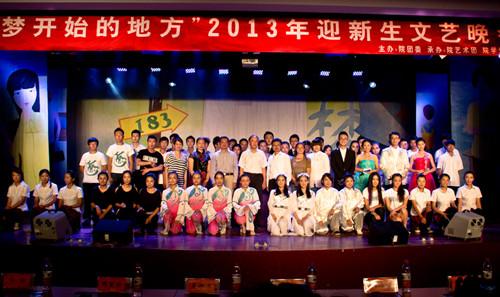 晚会以“梦开始的地方”为主题,分为青春伊始和逐梦远航两个篇章,意指经过寒窗苦读迈入大学校园的2013级莘莘学子即将开启人生新的篇章。伴随着艺术团ECHO乐队热情四射、动感十足的开场歌曲,晚会拉开序幕。