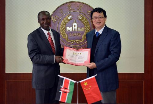 校党委书记左惟向Tuitoek校长授予名誉教授聘书