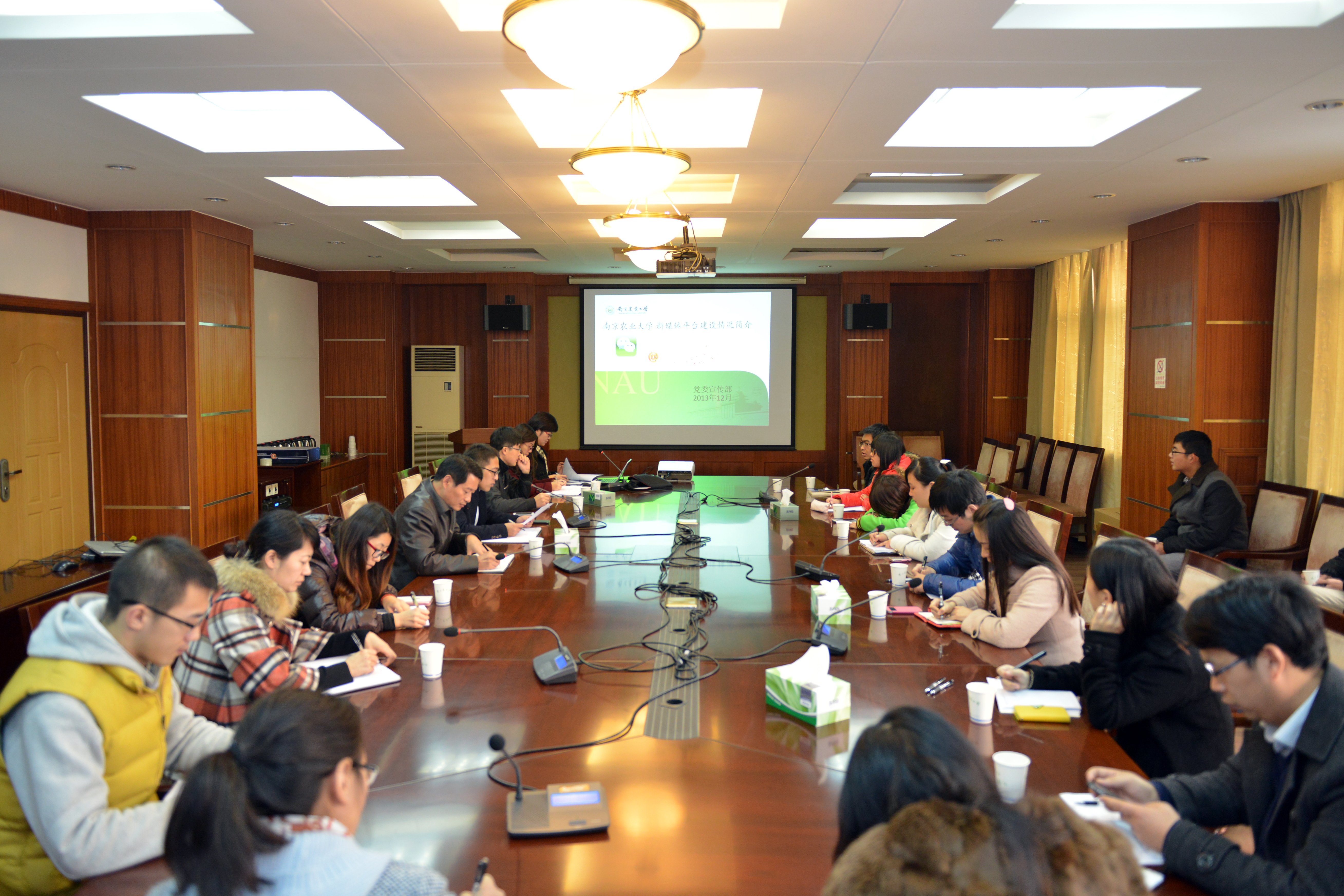 会上,宣传部新闻中心办公室副主任许天颖就我校官方微博的运营理念、运作机制、建设成效以及开通微信公众号的建设构想等进行了介绍,提出整合学校优势学科和权威专家资源,重点打造集科普性与互动性与一体的“南农百科”专栏,以及激活校内微博资源、构建微博矩阵、形成群态传播的发展思路。中国江苏网记者产经资讯部主任徐关辉,校团委、学工处、图书馆等部门,资环院、园艺院、植保院、经管院、金融院、公管院的新媒体宣传负责人分别介绍了所在部门和学院的官微运营状况,并就组建“南农百科”专家团、整合校内微博资源的建设细节进行了探讨交流。