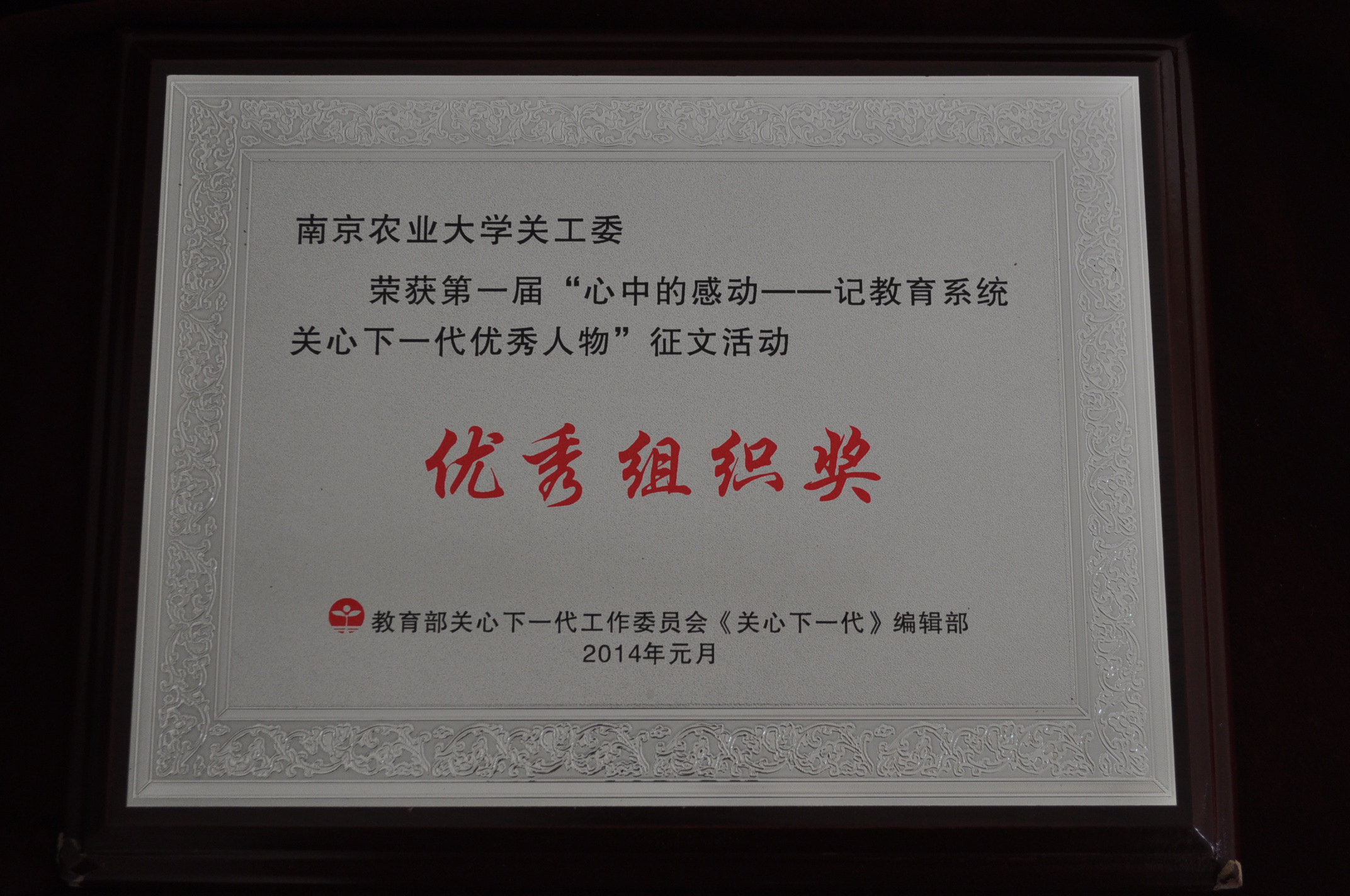近日,我校在教育部关工委举办的第一届“心中的感动——记教育系统关心下一代优秀人物”征文活动中获优秀组织奖,全国共有20家单位(其中高校关工委10个)获得该奖。