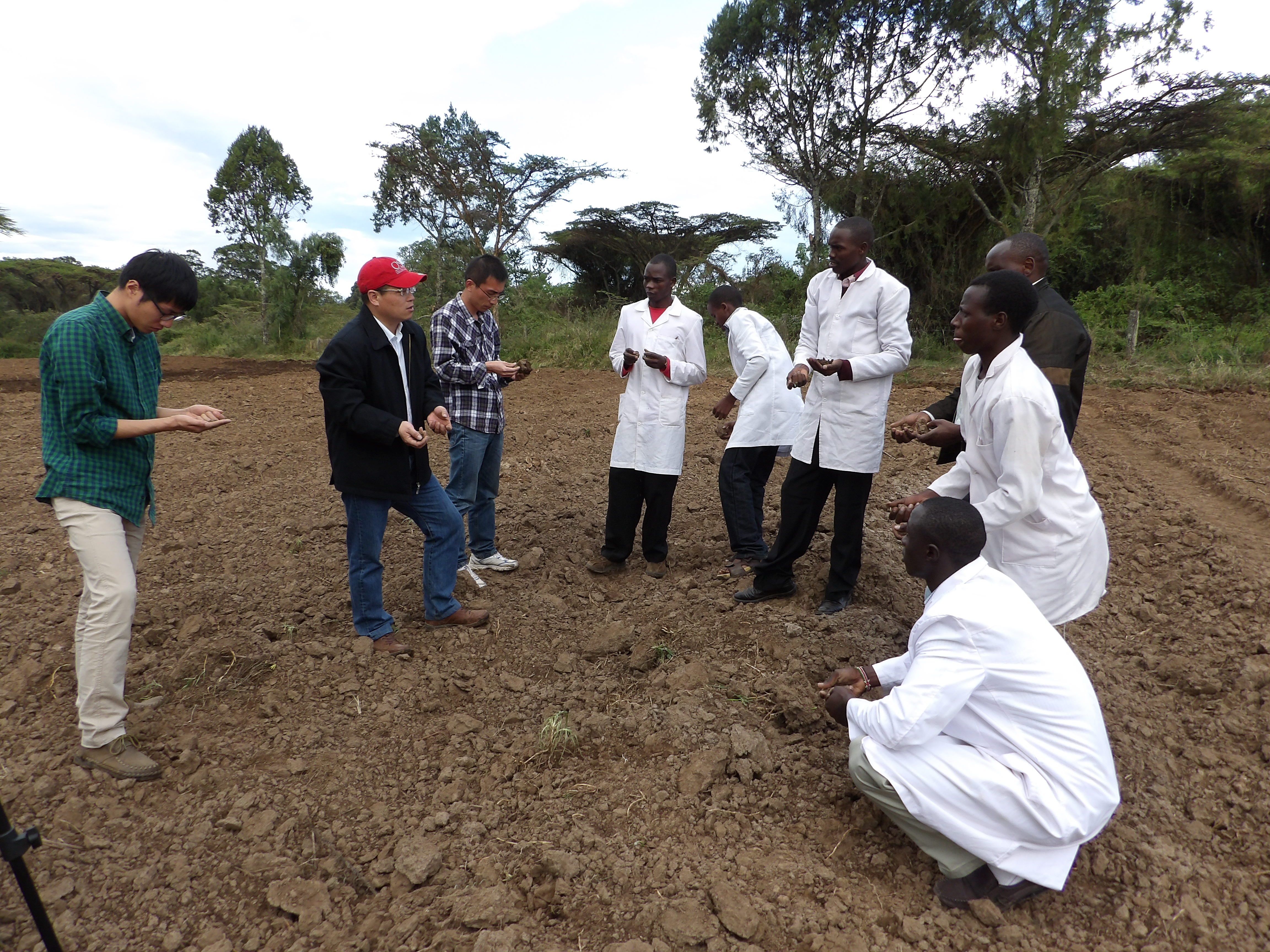 作为我校与肯尼亚埃格顿大学共建农业特色孔子学院的重要合作项目之一,中肯农业技术示范园建设的先期工作在埃格顿大学陆续启动。我校资源与环境学院张瑞福教授、国际教育学院副院长石松、园艺学院青年教师徐良博士、农学院研究生辛亮和江苏农林职业技术学院黄海教授等组成的代表团,于3月底赴肯尼亚埃格顿大学,会同孔子学院中方院长李远、孔子学院农业专家刘高琼教授,以及肯方相关人士,开展了园区第一批小区试验和大田示范试验项目。