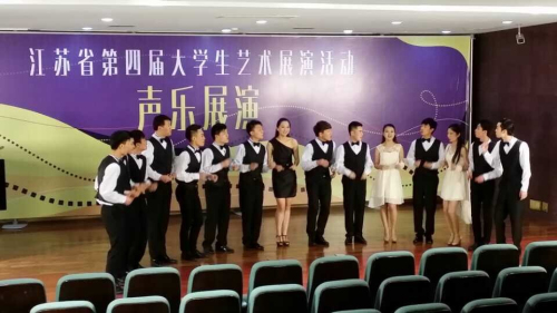 5月11日,在江苏省第四届大学生艺术展演活动声乐比赛中,由我校人文学院谷建、凌玲、杨雨点等15名同学组成的小合唱团凭借扎实的演唱功底技压群雄,获得小合唱(表演唱)专业组全省第一名的优异成绩。该合唱团由人文学院李燕副教授、周辉国副教授领队,王菲老师、陈学元老师负责指导、训练,参赛曲目改编自Don McLean创作英文歌曲《American Pie》。