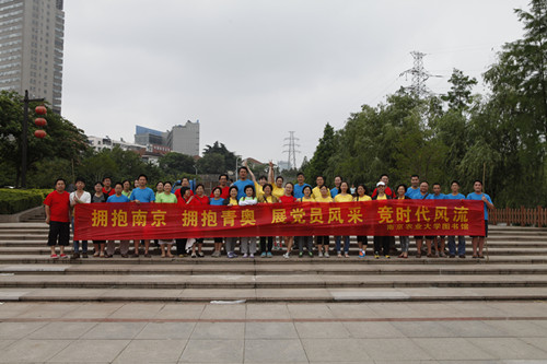 龙舟赛在南京市石头城遗址公园的秦淮河水上运动场展开。队员们都是初次接触龙舟,在舵手教练的培训指导中,大家团结一心,勤加练习,一个多小时的培训后已基本掌握简单技能。正式比赛设置了500米直道竞速,四个党支部分队在秦淮河面展开了龙舟竞逐。一声令下,参赛龙舟如离弦之箭全速前进,“咚、咚……”,“一、二、一、二……”在鼓手律动的鼓声指挥下,划手们彪悍威猛,整齐划桨,前倾、后仰,10米长的龙舟争占鳌头,气势恢宏,激情震撼,现场观众也按捺不住高喊“加油”。