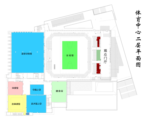 主馆采用大跨度空间网壳结构,可同时容纳5000人以上,有固定座位2392个,活动座位1019个,还可设置1000多个临时座位,适用于高水平体育赛事和学校大型室内活动以及学术报告等功能。在主馆的周围设有篮球馆、排球馆、羽毛球馆、乒乓球馆、武术馆、跆拳道馆、健美操馆、形体训练馆、健身房等专业场馆,功能齐全,既能满足学校体育教育教学需要,又能丰富师生业余健身与竞赛活动。馆内同时配备有裁判员休息室、运动员休息室、新闻发布室、嘉宾休息室、教师办公室、体育器材室等系列辅助用房,是一座集体育教学、科研、比赛、训练、展览、大型会议、学术报告、文艺演出和学生活动场所等多功能为一体的综合性体育场馆。