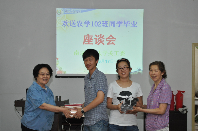 经过四年的共建,农学102班全体同学没有辜负学院领导、老师和关工委老同志的殷切希望,即将以优异的成绩走向社会。农学102班团支部先后荣获校“先进团支部”、校“优秀团支部标兵”、“江苏省活力团支部”;班级先后获得校“十佳班级”、校“先进班级”、江苏省“先进班集体”、江苏省“周恩来班”等称号。该班27名毕业生,保送校外研究生3人,占年级近50%(清华大学1人,中国农业大学2人),保送校内4人(其中硕博连读2人),另有8人考取中国科学院、浙江大学、南京农业大学等校研究生。有13名同学光荣地加入到中国共产党组织,10名同学荣获校优秀毕业生。该班已成为我校名副其实的优秀班级。