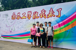 在工学院浦口校区,迎新工作也顺利开展,工学院学工处特意准备了一面特制迎新墙,每一位新生都可以和家长在迎新墙上“签到”,对即将开始的大学生活说,“南农,我来了!”