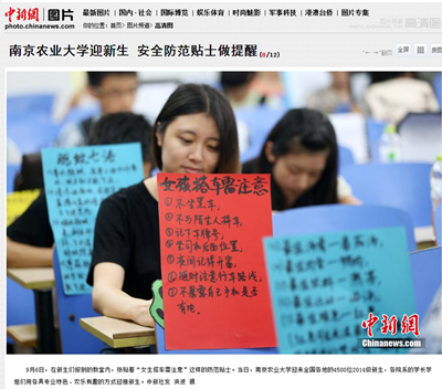 面向新生的入学安全教育,保卫处今年将在军训中新增“急救应急演练和自救急救知识普及”,届时会邀请消防官兵和校红十字会的专业老师进行现场指导。针对近期女生失联事件频出,校心理协会将举办广场活动“人际信任与警惕并存”,现场发放专门制作的“安全锦囊”,并接受团体辅导的报名,微信“南京农业大学心理健康中心”将开设专题,方便女生及时举报和“晒案例”。