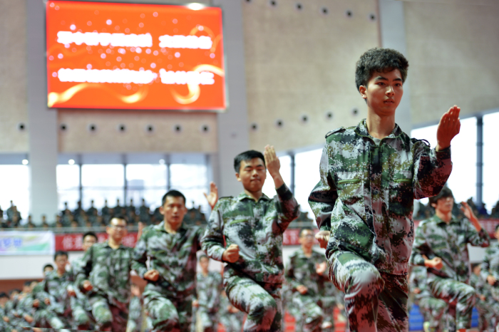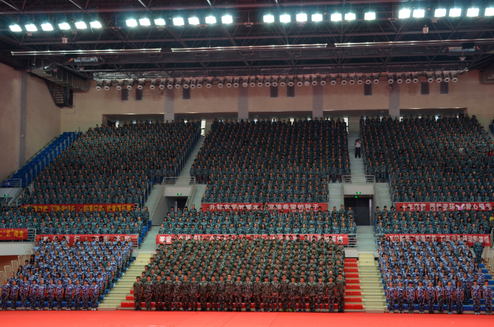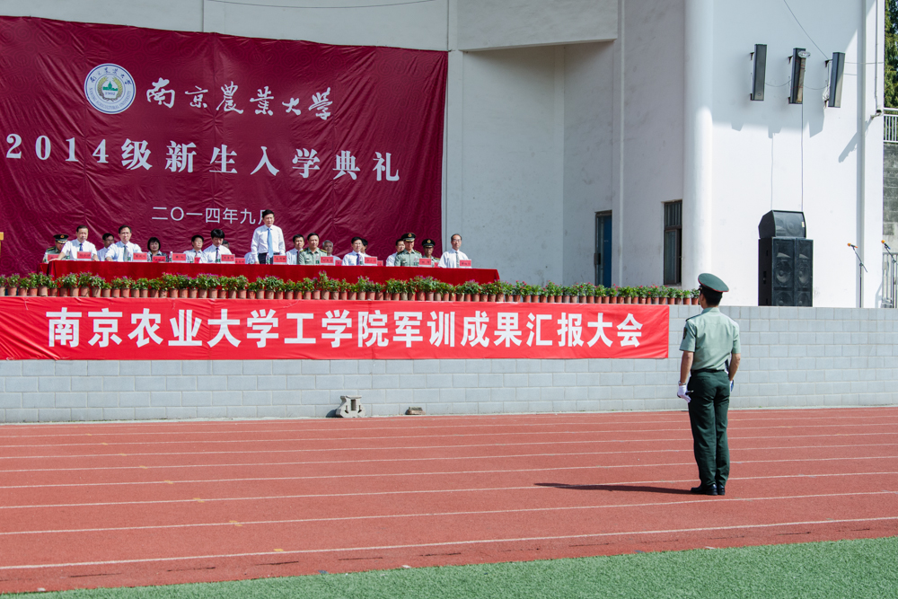 9月23日上午,我校2014级本科生军训成果汇报会在校体育中心举行。江苏省军区学生军训工作办公室、江苏省教育厅体卫艺处、南京警备区、玄武区人武部、临汾旅的首长和领导应邀参加大会。校党委副书记盛邦跃,副校长徐翔,校党委常委、党委办公室主任刘营军及各学院、各单位相关领导出席了大会。大会由校人武部部长刘玉宝主持。