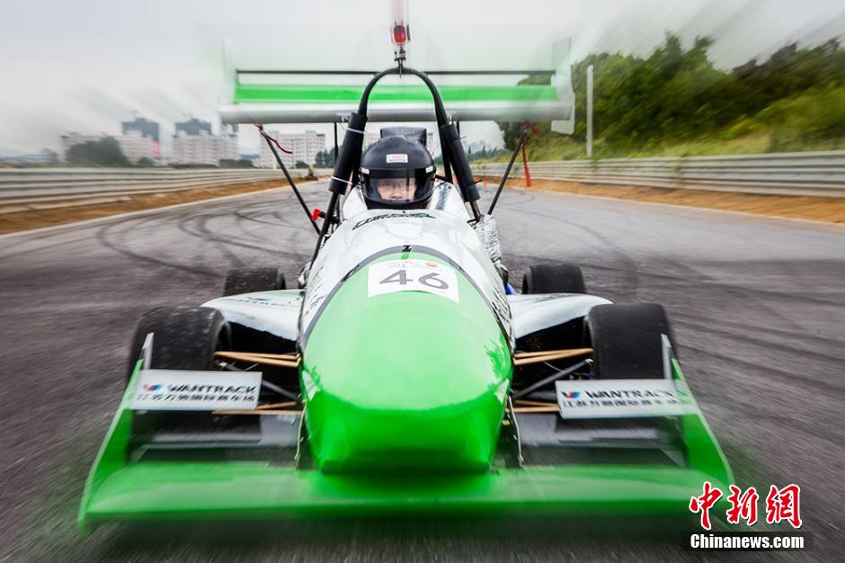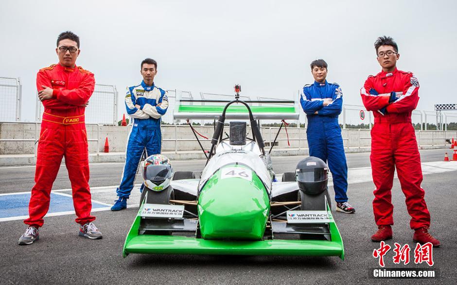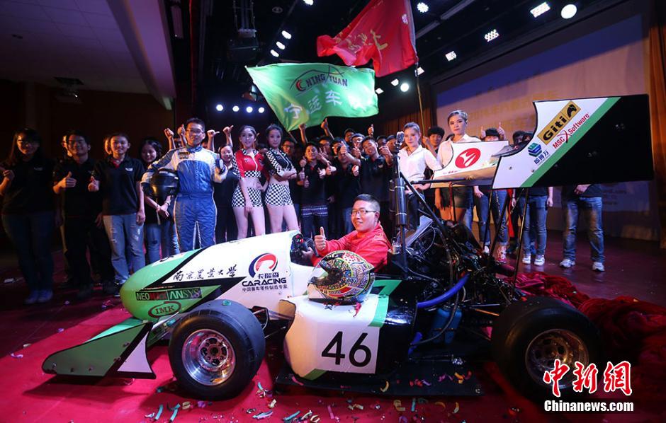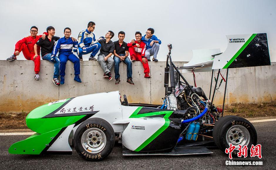 9月29日,南京农业大学宁远车队2014赛季新车“万驰号”在该校浦口校区大学生活动中心正式亮相,同时发布最新形象海报,在现场近千学生的加油声中出征在湖北襄阳举行的2014中国大学生方程式大赛。据悉,南京农业大学“宁远车队”成立于2010年9月,自成立以来,已连续三年参加中国大学生方程式汽车大赛并获得较好名次。此次出征的“万驰号”绿白相间,车长2.3米,车宽1.3米,车高1.2米。不仅在外形上有了很大改进和突破,同时增加了全新的空气动力学套件,用于改善赛车的空气动力学性能。图为车队全体成员与新赛车合影。赵育卉 摄
