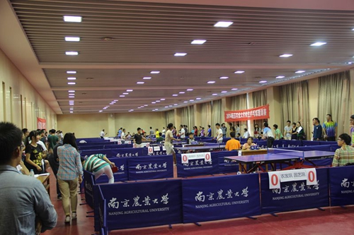 10月8日至9日,由校体育部主办的“2014年南京农业大学师生乒乓球邀请赛”在体育中心乒乓球馆拉开战幕。全校16个学院积极参加比赛,按照比赛赛制各院分别派出一名教师和两名学生参赛。经过激烈的角逐,最终经管院、动科院和金融院分获第一名、第二名、第三名,理学院、资环院、生科院分获四至六名。