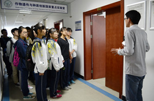 同学们来到了理科楼-作物遗传与种质创新国家重点实验室,实验室游老师引导同学们参观了大型仪器设备,悉心介绍实验室组成,离心机、测序仪、细胞融合仪等仪器的用途等等。在国家信息农业工程技术中心实验室的两位师兄简要介绍了农情信息检测、农业生产模拟、农业精确管理决策、信息产品研制开发等。最后同学们来到了水稻栽培实验室,李老师介绍了关于米水稻的种植关键。