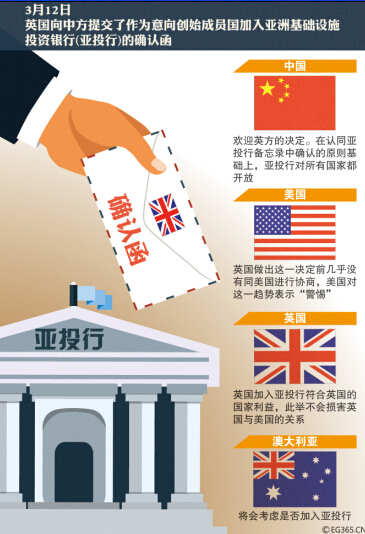 3月12日,中国财政部官网发布消息称,英国向中方提交了作为意向创始成员国加入亚洲基础设施投资银行(以下简称亚投行)的确认函,正式申请加入亚投行。