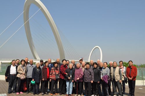 参观前 ,老同志们还兴致勃勃地游览了河西新城、滨江风光带和南京青奥村,在“南京眼”前纷纷留影,领略美好的春光,感受南京城市的建设和发展。