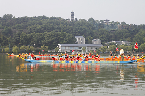 为传承端午文化,弘扬民族精神,推动群体健身活动开展,培养职工团队协作精神,6月20日,图书馆工会联合信息科技学院、体育部、校后勤集团公司、工学院图书馆举办端午赛龙舟活动。
