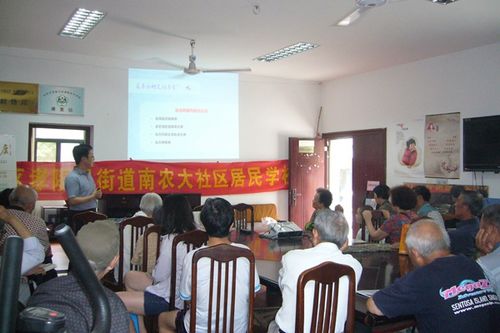 6月24日下午,南农大社区邀请到南京市中医院内分泌科邵鑫博士,在社区活动室给居民讲授夏季糖尿病人养护知识,50多位居民参加了讲座。